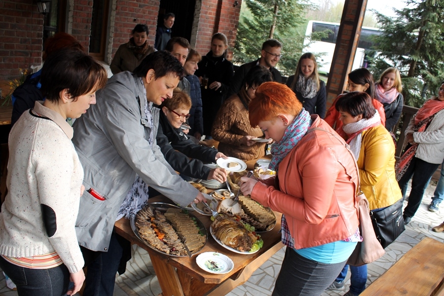 Dzień zaczęliśmy od wizyty w Piekarni Gądkowice, która przywitała nas zapachem prawdziwego chleba...Restauracja i Pensjonat "Hubertówka" rzuciła nas na kolana rozmachem realizowanych inwestycji i oczywiście rewelacyjną dziczyzną, której smak jeszcze długo będziemy wspominać. U pp. Lesiaków w Odolanowie zwiedziliśmy chyba najbardziej zagospodarowaną działkę w regionie (jeśli nie w Polsce) a Roma Wróbel w Wysocku Małym (Wylęgarnia Wróbel) edukowała nas z zakresu hodowli kur i produkcji jaj, z których lęgną się nioski zielononóżek kuropatwianych oraz zdrowego żywienia - pił ktoś kiedyś np. jogurt z jarmużu i bananów? W Piekarni GS Przygodzice kolejna, obfita porcja pieczywa i słodkich ciast i ciasteczek a w roli głównej oczywiście "Baryczok".