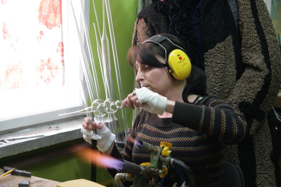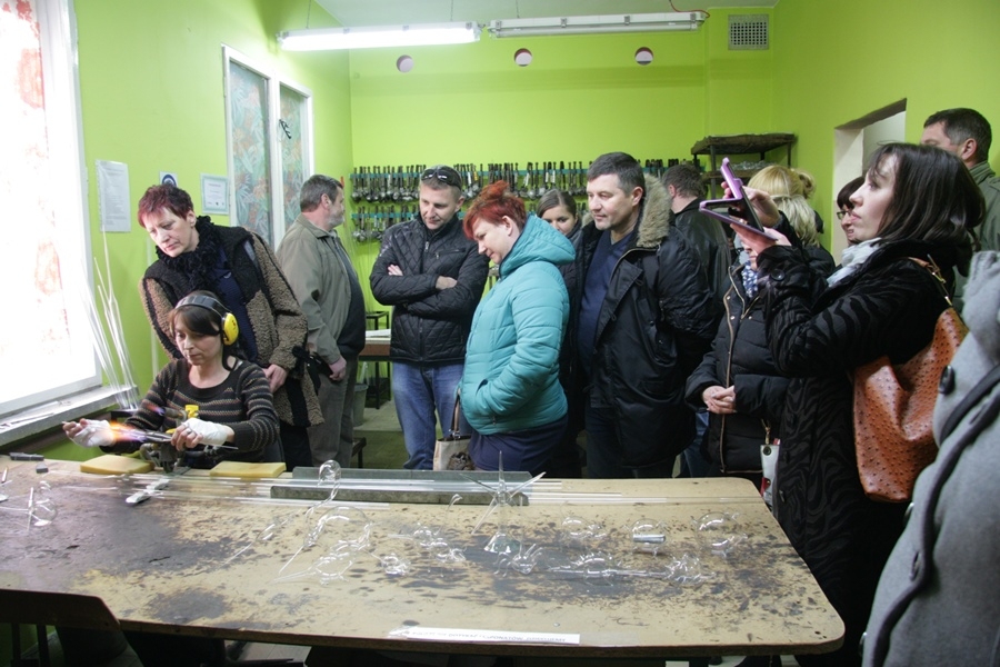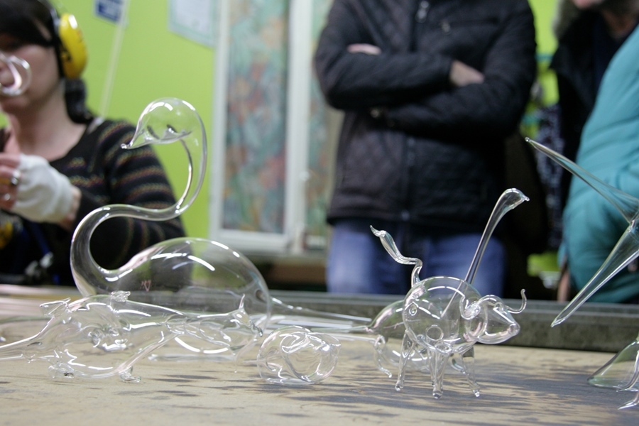 -Spółdzielnię "Szklany Świat Bombki" - byliśmy świadkami niesamowitego pokazu wydmuchiwania i dekorowania bombek, ale także innych szklanych ozdób