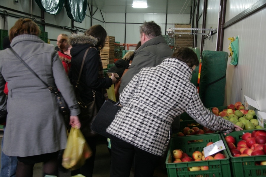-Gospodarstwo sadownicze rodziny Dziekanów - już na wejściu poczuliśmy piękny jabłkowy zapach wewnątrz chłodni na Kolejowej w Krośnicach. Każdy uczestnik wyjazdu zakupił co najmniej siatkę jabłek, a niektórzy wynosili jabłka nawet w skrzynkach!
