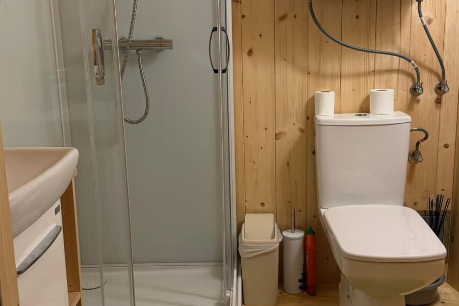 Jurta została zbudowana z naturalnych, ekologicznych materiałów — drewnianego szkieletu, drewnianych drzwi i okien oraz naturalnego poszycia dachowego. Wnętrze to wyłącznie naturalne drewno: podłogi, antresola, łazienka i wyposażenie wykonane bez chemicznych, sztucznych dodatków. Całość tworzy zdrową, przyjazną przestrzeń do oddychania i odpoczynku. W jurcie znajduje się klimatyzator/pompa ciepła wraz z budowanym jonizatorem powietrza, który oczyszcza i utrzymuje odpowiednią wilgoć. Na terenie Jaworowego Domu dbamy również o segregację odpadów i świadome korzystanie z zasobów naturalnych, wspierając ideę zrównoważonego wypoczynku w Dolinie Baryczy.