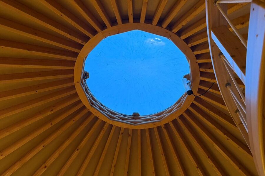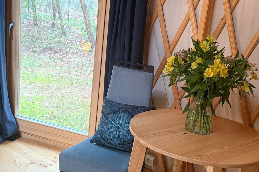 EKO Jurta łączy naturalne materiały, okrągłą konstrukcję opartą na planie świętej geometrii i bliskość lasu Doliny Baryczy. Jej kształt tworzy harmonijną, kojącą przestrzeń, w której goście natychmiast czują spokój i bezpieczeństwo. Ulokowana wśród drzew, z widokiem na naturę i podnoszoną kopułką umożliwiającą obserwację nieba, oferuje doświadczenie, którego nie daje żaden standardowy nocleg — prawdziwą zanurzoną w naturze, autentyczną formę regeneracji.
