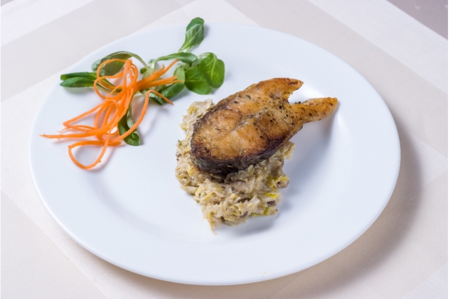 Głównie potrawy z karpia z Doliny Baryczy, unikatowy produkt lokalny jakim jest Karp Milicki. Na bazie tego produktu lokalnego budowana jest cała usługa gastronomiczna zarówno dla odbiorcy indywidualnego jak i zbiorowego. Potrawy z karpia milickiego uwzględniają całoroczną dostępność karpia , Były i będą organizowane uroczystości w ramach obchodów Dni Karpia tzw. kolacje rybne które są unikatowym wydarzeniem integrującym współpracę producentów i usługodawców DBP jak i Partnerstwa dla Doliny Baryczy, które jest koordynatorem tych wydarzeń. Corocznie organizowaliśmy dwie takie kolacje rybne . Będziemy w przyszłości również organizować tego typu imprezy w pełnym zaangażowaniu dla podtrzymania tradycji jak realizowaniu popularyzacji karpia jako doskonałego produktu kulinarnego.